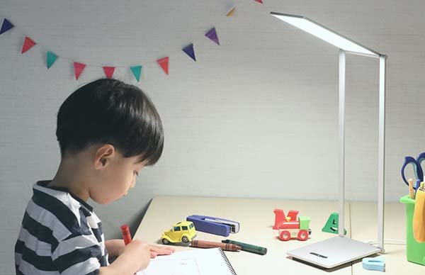 OLEDライトは目に優しい光で子どもの学習をサポート。自然光に近い高演色性、面で照らすので影が柔らかい光、眩しさがなく字が読みやすい光。極薄型でスタイリッシュな外観。最高品質の光は大人のテレワークにも最適です。